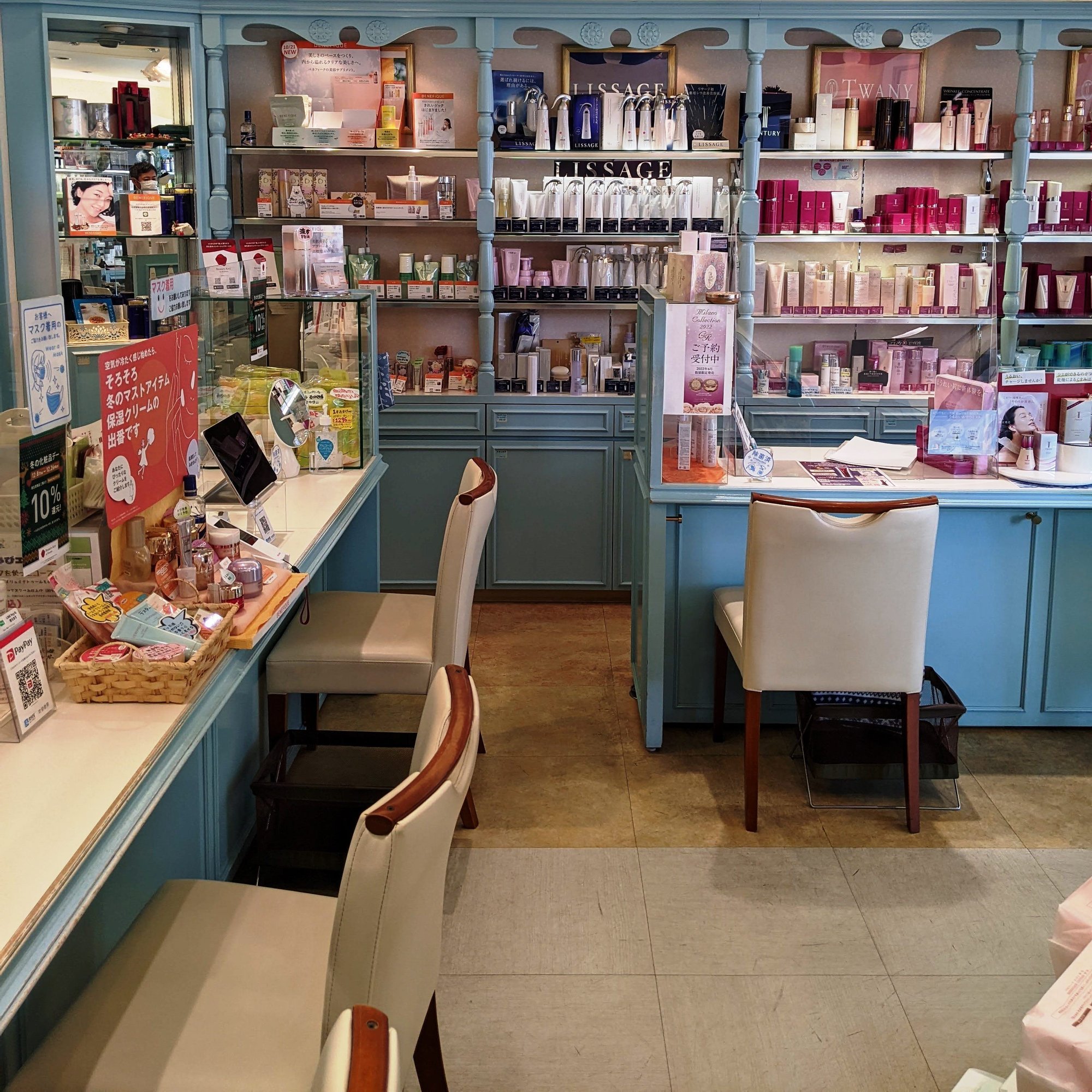 普段着でゆっくり相談できる街の化粧品屋をモットーに、多くの方に長くご利用いただいています。お化粧やスキンケアのことで何か疑問がありましたらお気軽にご来店ください。